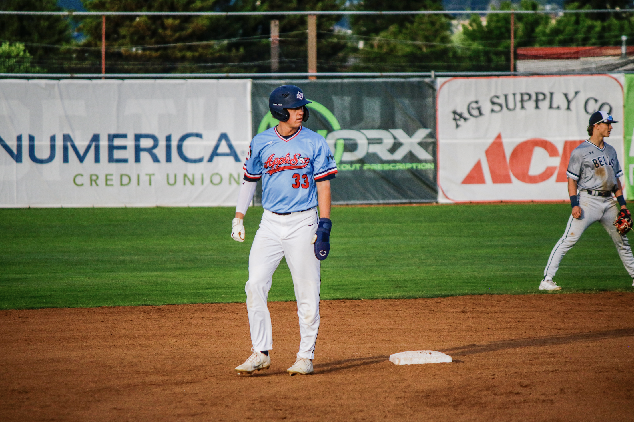 The AppleSox returned home to take on the Bellingham Bells and debuted their new powder blue alternate jerseys on Friday night. It was a tight game with plenty of action and the fans contributed to a great atmosphere with incredible scenery. The Sox will host Mascot Night scheduled during the Saturday evening game against the Bells with first pitch scheduled for 6:35 p.m.