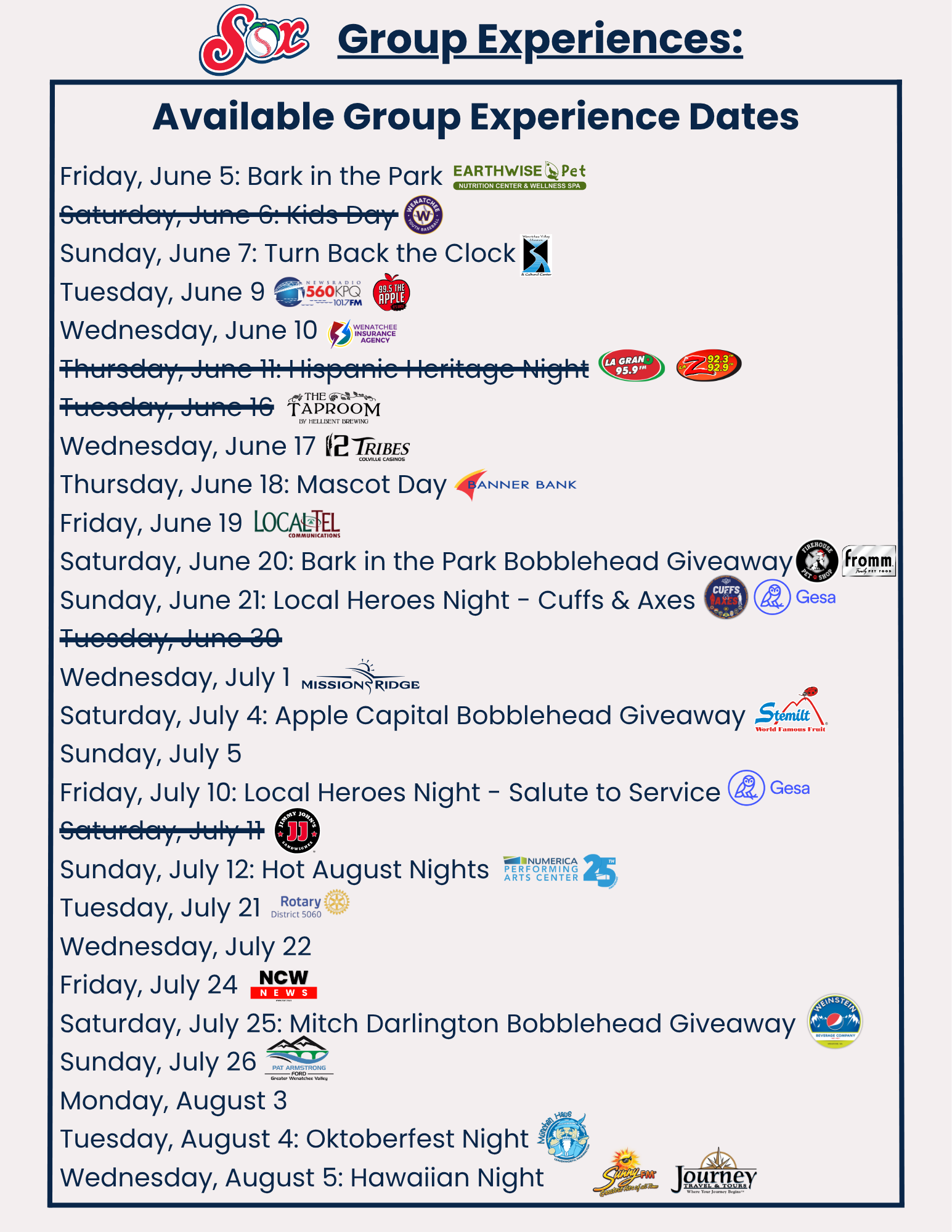 To accommodate group experiences, the AppleSox requires a 7-day notice.