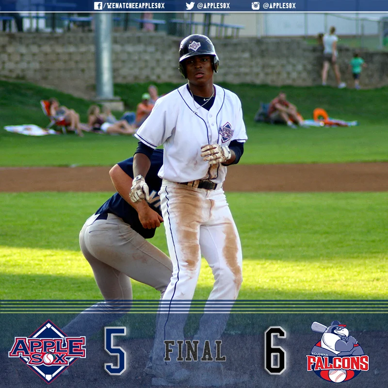 WENATCHEE - The Wenatchee AppleSox (9-17), rallied late for five runs in the seventh and eighth innings against the Kelowna Falcons (13-13), but fell 6-5 on Independence Day at Paul Thomas Sr. Stadium.